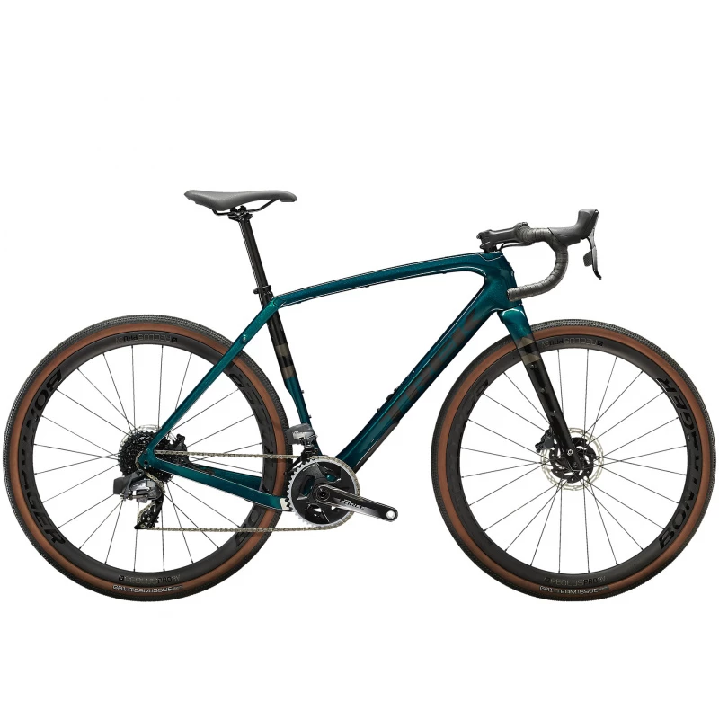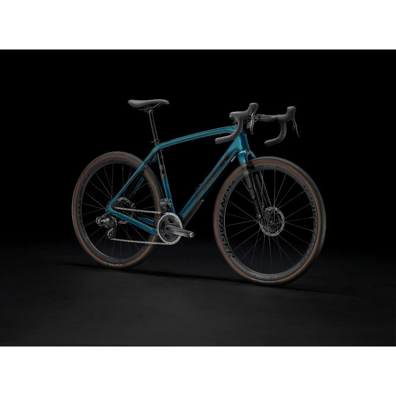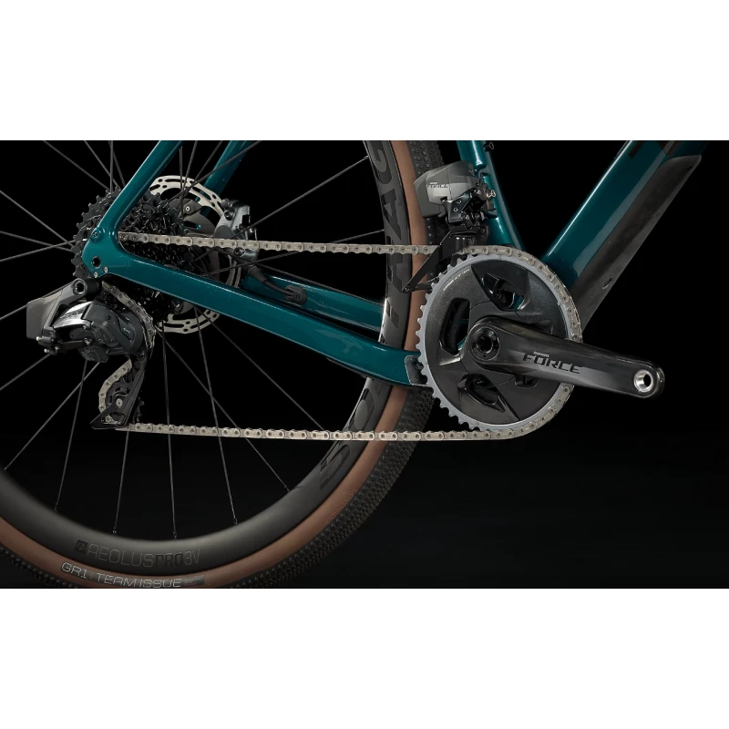 Un cadre en OCLV Carbon Série 500 avec IsoSpeed à l’arrière et une protection Carbon Armor, une géométrie progressive qui est stable lorsque vous roulez vite et efficace quand vous progressez dans une côte, un espace de rangement interne, des câbles masqués qui ne gêneront pas les sacoches, des fixations de sacoche de cadre intégrées et des fixations de porte-bagages et de garde-boue. Sans oublier une fourche en carbone, une transmission électronique sans fil 2×12 vitesses SRAM Force eTap AXS avec une cassette à large plage de rapports, et des roues Bontrager Aeolus Pro 3V en OCLV Carbon. Vous pouvez même installer une tige de selle télescopique pour abaisser le centre de gravité sur les longues descentes.