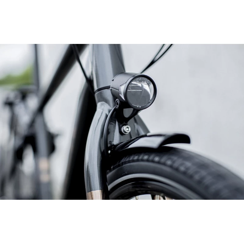 Un cadre en aluminium léger Alpha Smooth avec une géométrie droite confortable, une transmission à courroie Gates CDX avec un moyeu interne 8 vitesses Shimano Alfine et un moyeu avant à dynamo Shimano qui alimente vos feux. Sans oublier, de puissants freins à disque hydrauliques, des garde-boue, des poignées ergonomiques confortables, une potence réglable, un porte-bagage compatible MIK, et des pneus larges et stables avec des flancs de pneu réfléchissants.