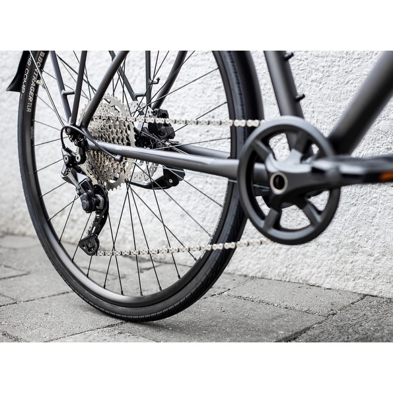 Entraînements, trajets quotidiens ou loisirs, tout est possible avec le cadre léger en aluminium Alpha Gold, les 18 vitesses Shimano, les freins à disque Hydrauliques, la transmission monoplateau performante et des pneus mi-fins rapides sur l’asphalte et stables sur sol meuble.