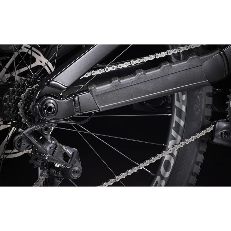 Un cadre robuste en alliage d’aluminium, un débattement de 200 mm à l’arrière avec un amortisseur Marzocchi Bomber, une fourche RockShox Boxxer Select à 200 mm de débattement avec un amortisseur Charger RC rembourré, de puissants freins à quatre pistons Code R 4 et une transmission SRAM GX 7 vitesses.