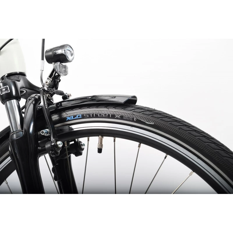 Entièrement équipé, ce vélo confortable est taillé pour vous messieurs. Le moyeu à pignons Shimano Carbon Drive offre tous les avantages d’un système durable, qui ne nécessite qu’un minumium d’entretien. Les freins en V et le frein à rétropédalage vous permettent un freinage en toute sécurité. Équipé d’une tige de selle à ressort et d’un débattement de 40 mm à l’avant, vous ne subissez aucun coups lors des petits obstacles.
